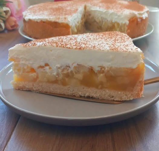 Diese Apfel-Sahne-Torte ist der Inbegriff von Leichtigkeit und Genuss. Ein zarter Mürbeteigboden, darauf eine saftig-fruchtige Apfelschicht, gebunden mit feinem Pudding, und gekrönt von einer luftig aufgeschlagenen Sahnehaube – dieser Kuchen schmeckt wie ein Stück Himmel auf der Zunge. Perfekt für den Sonntagskaffee, Geburtstage oder als edles Dessert nach einem feinen Essen. Der Geschmack erinnert an Omas Apfelkuchen, aber die cremige Schicht verleiht ihm eine moderne, feine Note. Serviert mit etwas Zimt oder Kakaopulver bestäubt, wird er garantiert zum Highlight jeder Kaffeetafel.